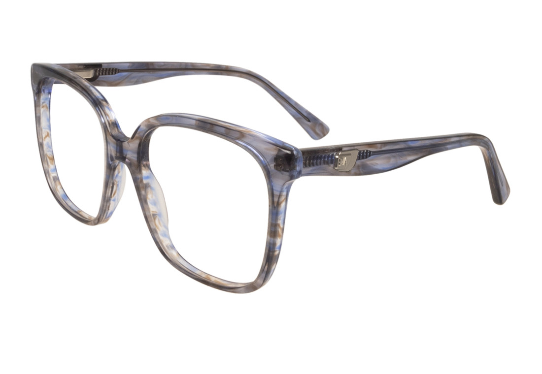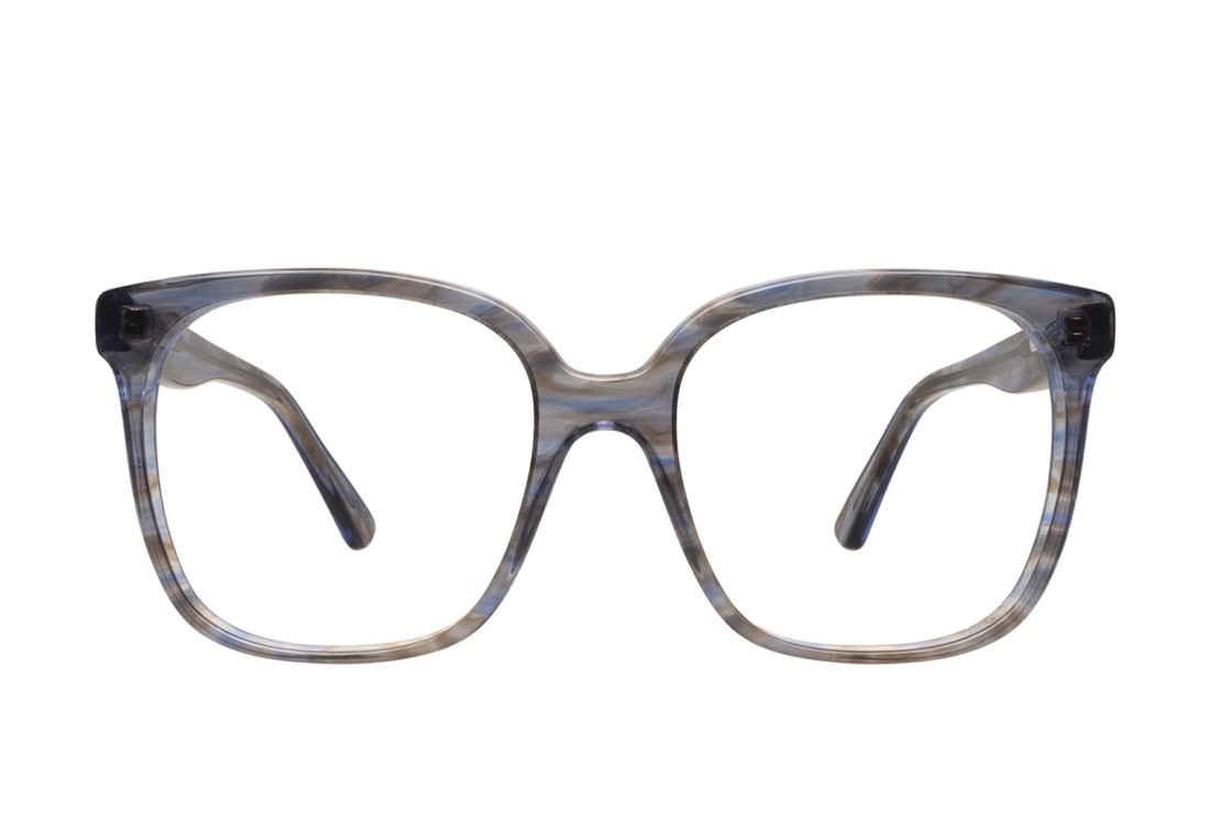 Eva es un modelo de acetato de ojos triangulares redondeados con estilo gato. De calce mediano y femenino, con detalle de facetado en la ceja. Las patillas con Flex metálico tienen un diseño curvo y textura suave.